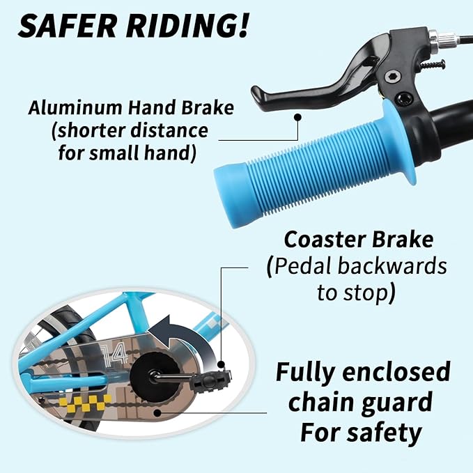 - 【Safety First】 Equipped with a hand brake and Coaster Brake, this toddler bike offers strong stopping power for young riders. The enclosed chain guard protects little hands from moving parts, ensuring worry-free rides.