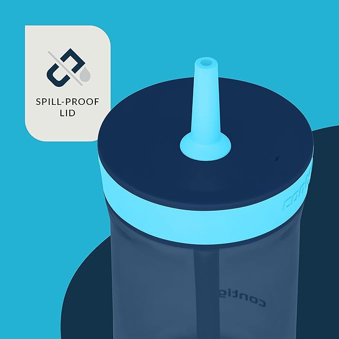 Contigo Kids’ Leighton Straw Tumbler with Spill-Proof Leak-Proof Lid 14oz Blueberry/Blue Raspberry