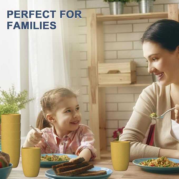 Wheat Straw Cups 6 PCS Good Alternative to Plastic Reusable Cups 20 oz Unbreakable Drinking Cup Reusable Dishwasher Safe Water Plastic Glasses Yellow Color