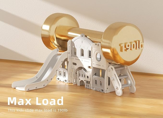 - Slide Climbing Play Set Size: 61"x87"x41.7"inch, maximum load weight: 190lbs, light weight and easy to assemble, no tools required
