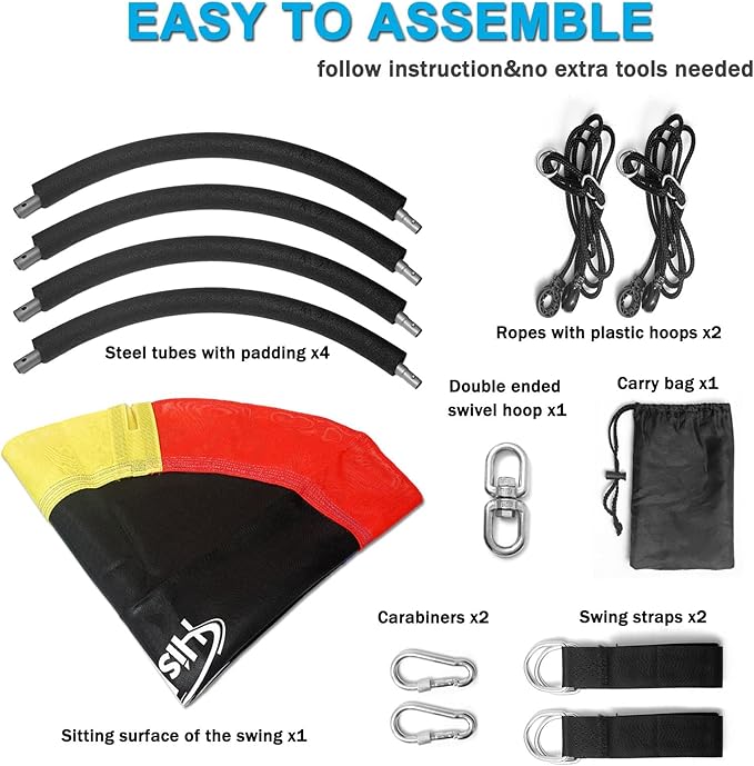 - SAFETY&STURDY:700lbs high weight capacity.By using 1.2mm reinforced steel tubes,thick ropes and textilene fabric,the tree swing provides excellent support, assure your kids’ safety and handle heavy duty play.