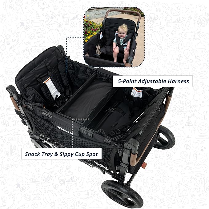 - Comfortable Elevated Seating: Features raised, removable, and reclining seats that enhance visibility and provide a cozy, relaxing ride for your little ones.