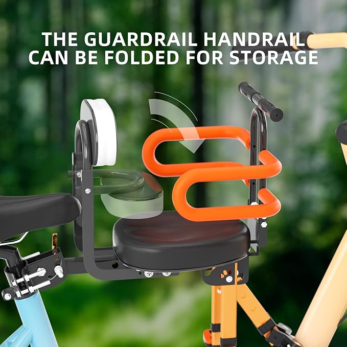 - 【Comfortable Child Seats】Front Child bicycle seat with soft seat backs, padded seat cushions and guardrails to keep children safe and provide comfortable conditions to enjoy riding with the family.