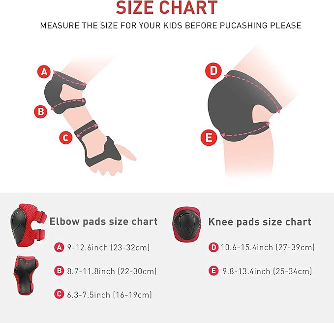 - 【SIZES AVAILABLE】The adjustable straps and closures on the helmet and protective gear make it easy to fit different sizes of knee, elbow, and wrist. It is flexible, secure, and can be adjusted and released quickly for added convenience. Helmet size S: 20''-21.3''(51-54cm) suitable for kids boy or girl ages 3-5-8 years old.