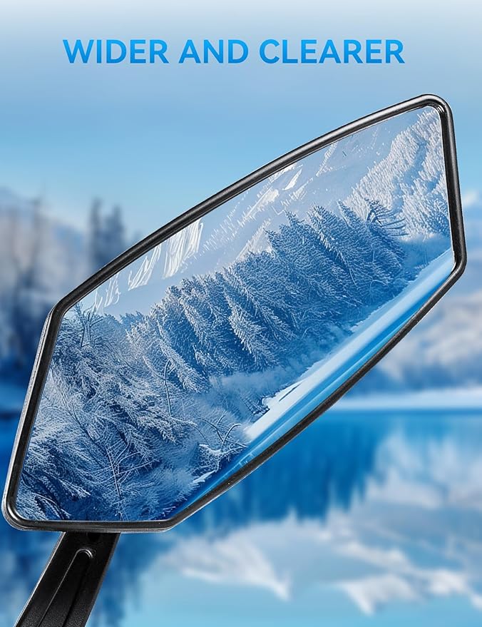 - 🚲️【Super Materials】The ebike mirrors main body is made of high-strength ABS with excellent impact resistance and durability. This bike accessories mirror surface is high-quality glass with a special coating, offering high definition and a good reflection effect to clearly show the rear road conditions. The stem is made of lightweight yet high-strength aluminum alloy, ensuring no shaking during rides.