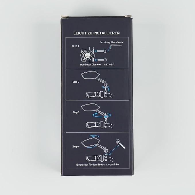 - 🚲️【Rotatable Angles】This rear view mirror for bike has a flexible adjustable angle design. The scooter mirrors surface can be rotated 360° in all directions. The bracket part can also be adjusted up and down and left and right within a certain range, further expanding the field of vision.