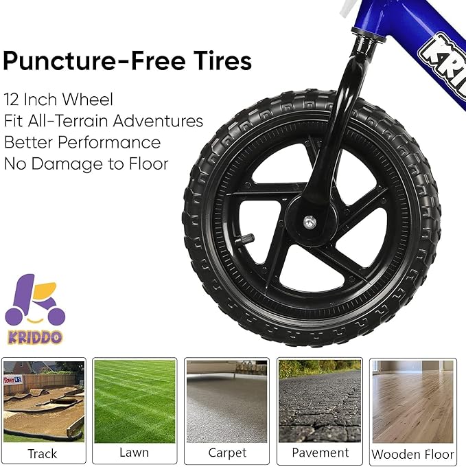 - EXTRA-THICK ALL-TERRAIN TIRES – We want kids to feel strong and stable when they’re moving on grass and sidewalks which is why we added puncture-resistant tires to the front and back of each balance bike for 3-year old’s and 18-month-old riders.