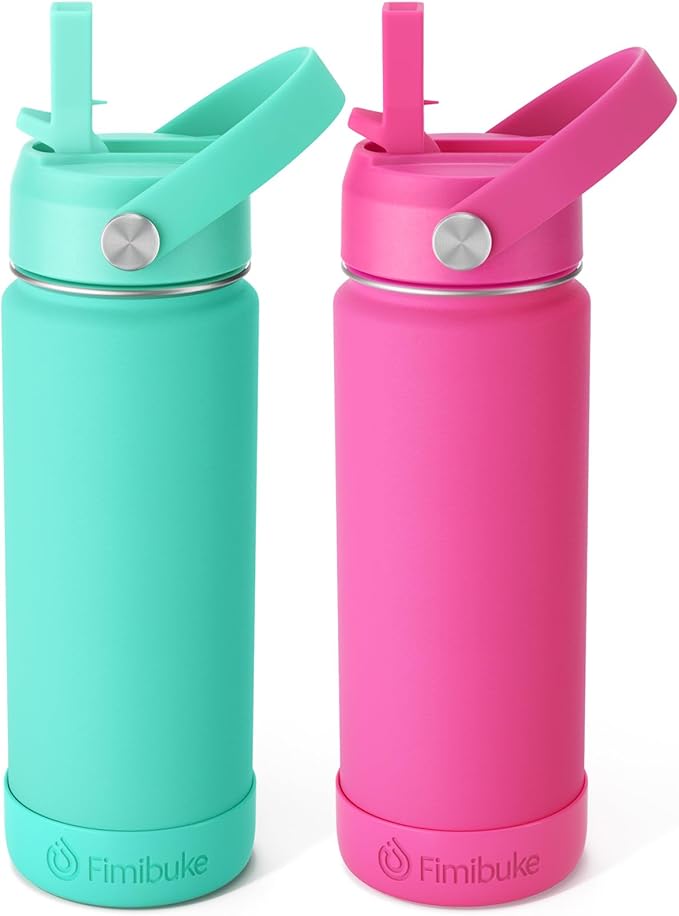 - SAFE MATERIALS FOR KIDS: Fimibuke kids insulated water bottle is made of premium 18/8 stainless steel, fully resistant to oxidation and corrosion. This water bottle comprises BPA-free, food-safe, non-toxic materials, making it safe for your kids. In order to maintain the vibrant colors, please clean the cup by hand washing. This metal water bottles for kids includes 2 Toddler Stainless Steel Water Bottles, 2 Leak Proof Lids, 4 Straws, 2 Straw Cleaning Brushes