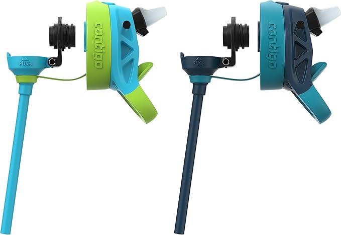 Contigo Kids 20oz 2-Pack Aubrey Water Bottles with Cleanable Silicone Straw Spill-Proof Lid Dishwasher Safe Blue Raspberry/Cool Lime & Blueberry/Juniper BPA-free