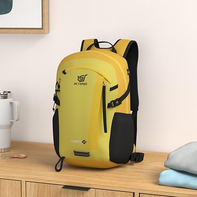 - UNIQUE APPEARANCE AND SAFETY DESIGN: The small hiking backpack features multiple compartments and an anti-theft zipper to prevent important documents and items from being stolen. The small daypack comes with an outdoor emergency rescue guide providing additional safety information for lovers of the outdoors. The LANTC20 backpack is the perfect combination of function and fashion, with a simple and smooth design featuring yellow webbing on the front panel and contrasting embroidery