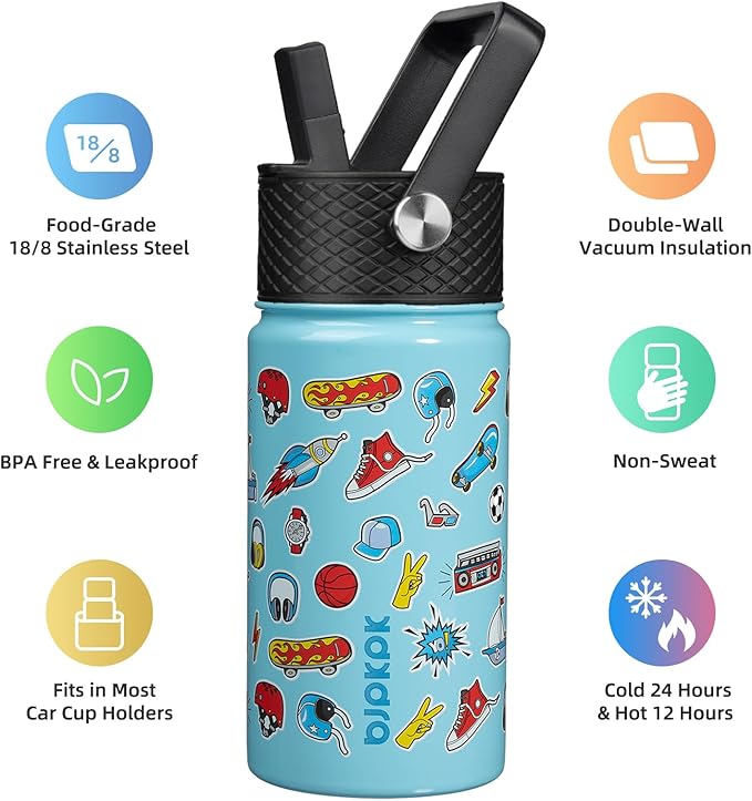 - VACUUM INSULATION WATER BOTTLE: BJPKPK insulated water bottle with straw lid is double-walled and vacuum sealed, which offers a never-ending chill for your favorite drinks - keeping them ice-cold for 24 hours and steaming-hot for 12 hours - so you can enjoy them at the perfect temperature for longer