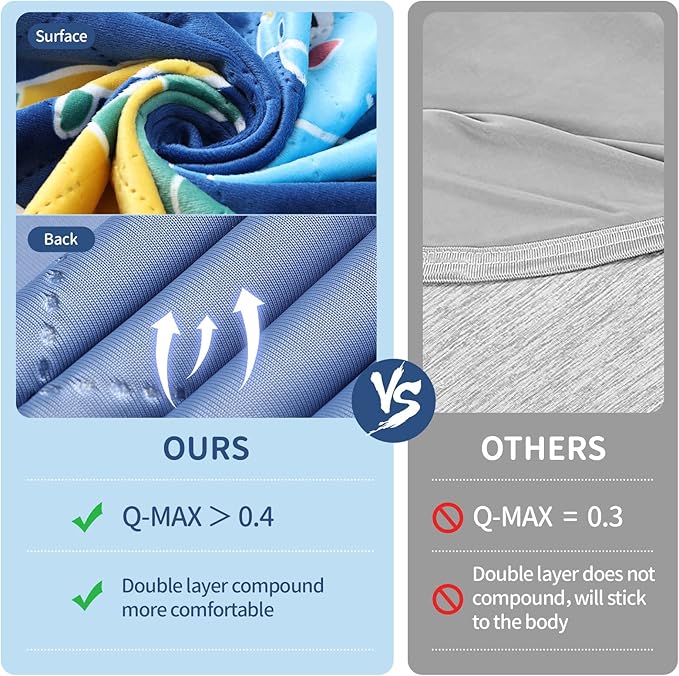 - ❄[Cooling Blanket]:Our glow in the dark cooling blankets for hot sleepers uses Japanese arch-chill cooling fiber(Q-MAX>0.4),which can absorb body heat excellently.Keep kids cool all night,even in warm,hot summer weather.