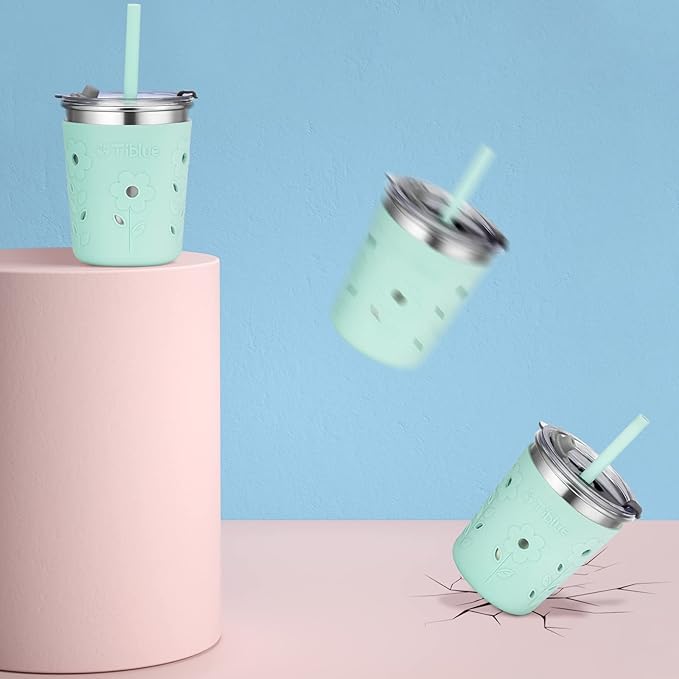 - PREMIUM MATERIALS FOR KIDS: Tiblue kids cups are made of food grade, toxic-free, premium 18/8 stainless steel, the sleeves and straws adopt lead free silicone, and spill proof lids are made of durable BPA-FREE plastic. This shatterproof stainless steel cups set comes with 4 Kids Stainless Steel Cups with Silicone Sleeves, 4 Leak-proof Lids, 4 Silicone Straws with Stopper, 1 Straw Cleaning Brush, perfect for helping your little ones drink freely at home or outdoors without spills or messes