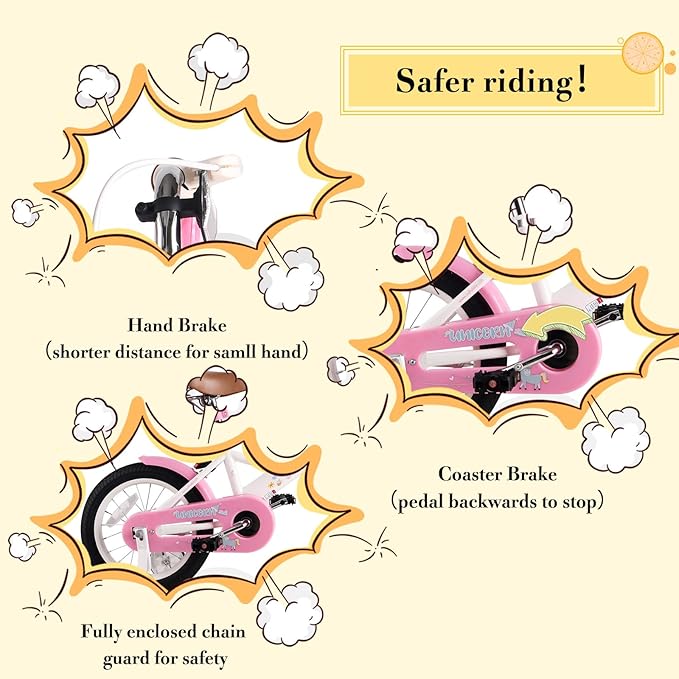 - 【Multiple Sizes】 12 inch bike is suitable for 2-4 years old (32-41 inch) girls; 14 inch bike is suitable for 3-5 years old (36 - 47 inch) girls; 16 inch bike is suitable for 4-7 years (41-53 inch) girls.