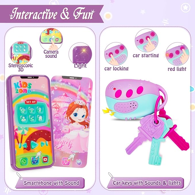 - Great Gift Idea for Girls Ages 2 3 4 5 6 : All fashion accessories look real, the smartphone and car keys make real life sounds and lights. Children always imagine that they use the things of adults, this little girl toys can just fulfill their wishes. Officygnet Little Lady Purse is the perfect princess toy for birthdays, holidays,Christmas and other special occasions. Perfect girl’s purse for kids 6-8 4-6.