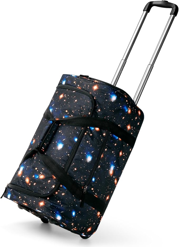 Choco Mocha Boys Galaxy Suitcase with Wheels Kids Black Rolling Duffle Bag for Camping Teen Boys Toddler Luggage Bag for Travel, 22inch