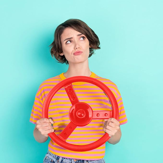 - Qaulity material: the playset steering wheel is made of plastic, which is nontoxic, odorless, environmental, safe to play; waterproof, anti fade, sturdy, not easy to break, holds up in weather, can be a long time used
