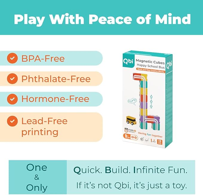 - 【Exciting School Bus Adventure for Toddlers】Start a fun-filled adventure with the Qbi Magnetic Blocks! Specially designed for tiny hands, the school bus toy promotes grip strength and fine motor skills. Its magnetic design allows easy stacking and creative play, fostering problem-solving and imaginative skills. Perfect for boys and girls aged 1+, this Montessori toy combines education with endless hours of fun.