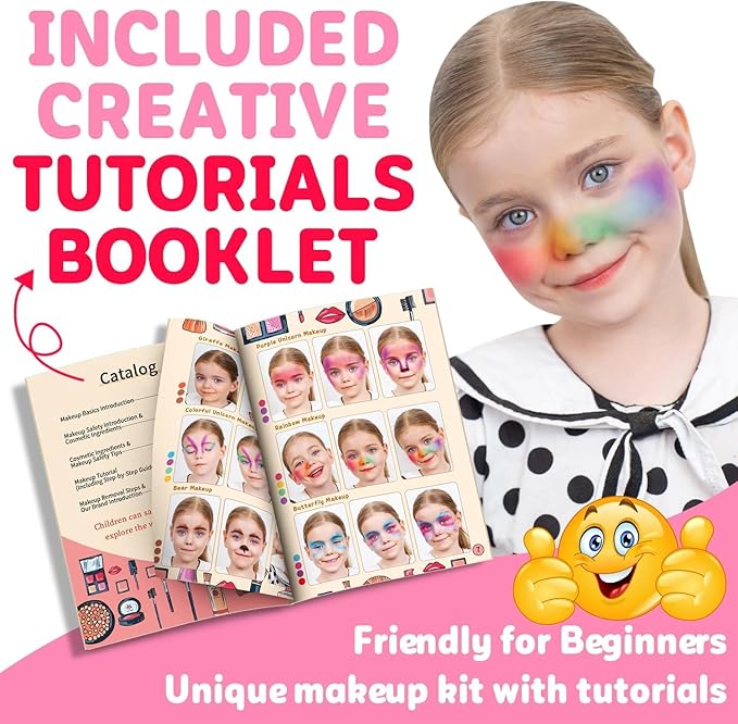 - 【Material Safety Makeup Toys】: kids makeup kit is made of high-quality, sturdy and renewable material that meet the standards of international children’s toys(CPSIA, CPC, ASTM certificates) for safety, and have been tested on body, there may be a slight harmless fragrance when the kids makeup kit for girl is just opened, but it’s can be used with confidence. Easy to wash off with soap and water, won’t leave stains on skin, clothes or furniture. Friendly for kids to makeup themselves.