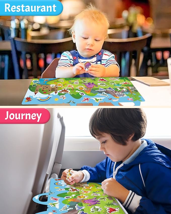Benresive Reusable Sticker Book for Toddlers 2-4 Years, Fun Travel Stickers for Kids, Waterproof Sticker Books for Toddlers 1-3, Crafts Activities for Toddler 1-3 2-4 3-5 - Dinosaurs