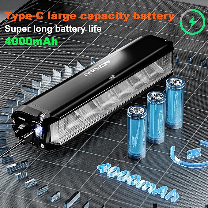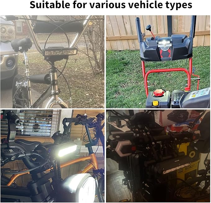- STEADY & EASY INSTALLATION: Mounting the base and bike lights itself made of high-quality aluminum alloy ,which is very sturdy and stablize, has good impact resistance and heat dissipation.The rechargeable light bar for dirtbike is very easy to install,no tools are required