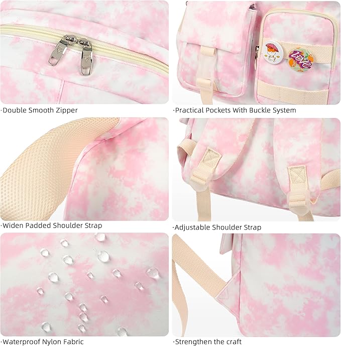 - 【Waterproof Material &Smooth Zipper】: The campus backpack is made of waterproof, ultra-lightweight, high density nylon fabric and cute printing polyester lining. The metal zippers closure are used by the premium quality zippers to ensure the long-lasting usage