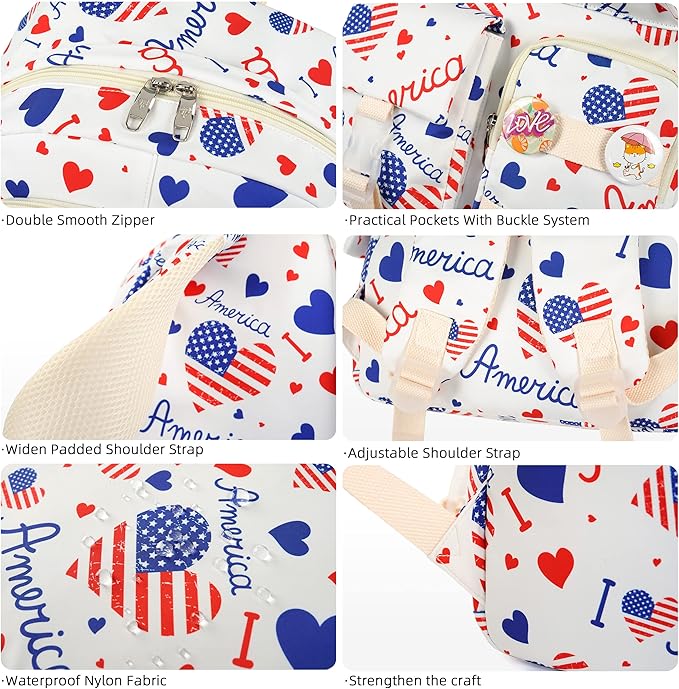 - 【Waterproof Material &Smooth Zipper】: The campus backpack is made of waterproof, ultra-lightweight, high density nylon fabric and cute printing polyester lining. The metal zippers closure are used by the premium quality zippers to ensure the long-lasting usage
