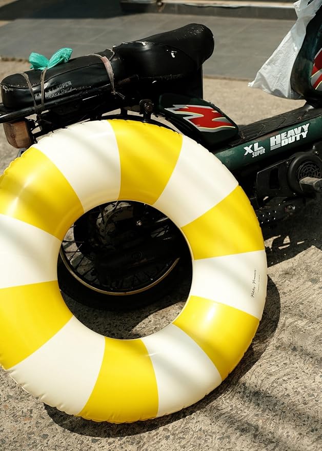 Petites-Pommes Water Floats for Adults - Durable Inner Tube, Handprinted Classic Striped Design Pool Float, Soft Comfort Seaming, Packable Floats for Travel, Yellow, 47 inch