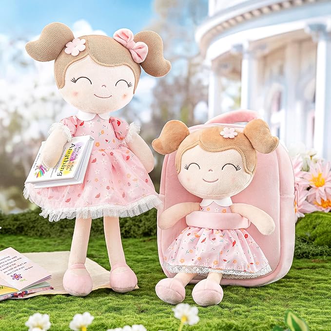 Gloveleya Kids Backpacks Girls Backpack Plush Bags Diaper Bag Backpack with Floral Doll Pink