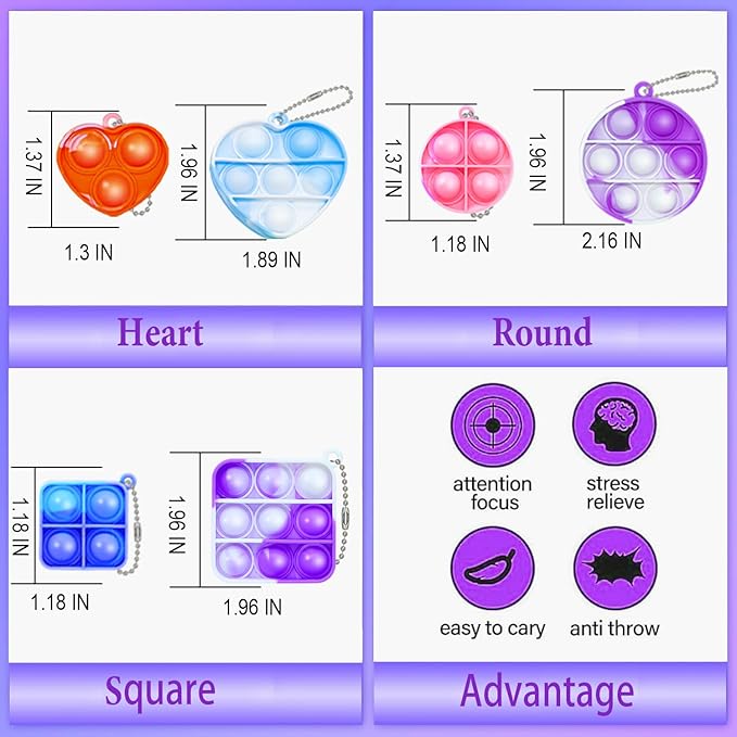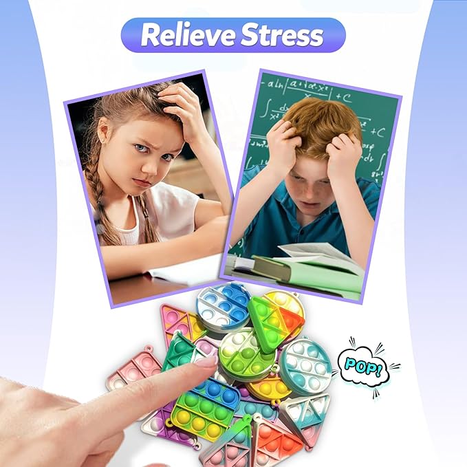 - 【Perfect Gift Party Favors】: Party favors for kids 3-5, pop party its favors for kids bubble Birthday gifts,classroom prize,Thanksgiving. Valentine's day,treasure box toys for classroom Christmas stocking stuffers,Children's day gifts,Office toys and more! Mini fidget toys pop bulk birthday party favors stress reliver for desk rainbow party favors bubbles party favors for kids pops bulk fidget keychains bulk pack party favors for adults kid party favors