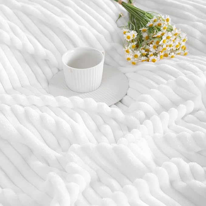 Ntbay Flannel Fleece Twin Blanket, Soft Lightweight Fuzzy Bed Blanket for Couch Sofa Bed All Seasons - White - 60 x 80 inches