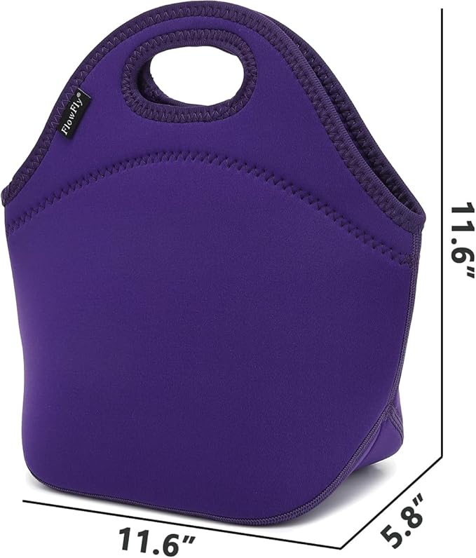 - Material:The Flowfly lunch totes are made of 5MM thick high quality neoprene material and smooth sturdy zipper and comfort-grip rubber tab,Vinyl-free, PVC-free.Neoprene is a kind of material which can also make wet suit,it can keep a surfer's body temperature stable, just think our lunch bag will insulate your lunch, it is durable and easy to clean.