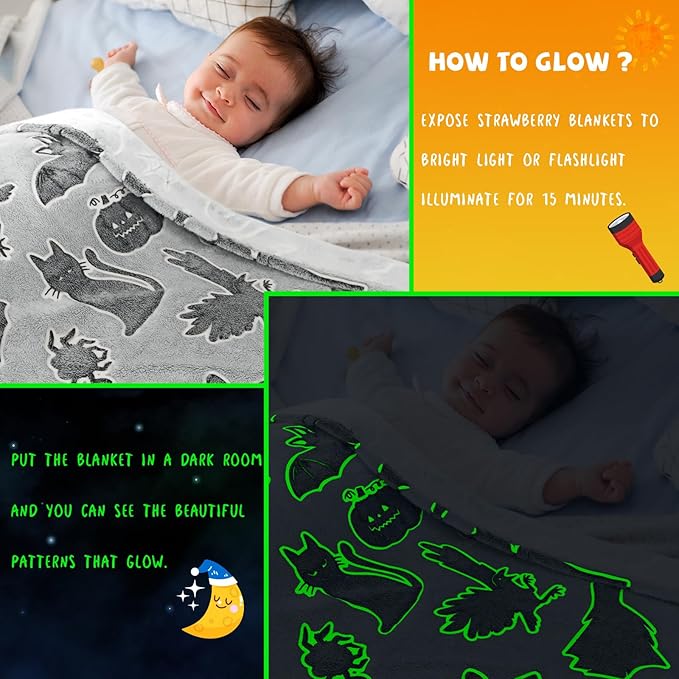 - GLOW IN DARK BLANKET - just expose bats halloween goth fleece flannel blanket throw to a bright light source or sunlight for about 15 to 20 minutes. the brighter the light, the stronger the cute throw blanket will be in the dark.is cool gifts for kids, great as halloween gifts for 1 2 3 4 5 6 7 8 9 10 year old boys. glow in the dark throw blanket for kids inspires fun for kids and is the best guardian of the children at night.