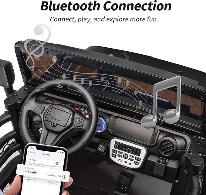 - IDEAL GIFT FOR KIDS: The electric 2 seater car for big kids battery powered vehicles comes with Wireless music and eye-catching LED lights, delivering thrilling rides and a surprise kids will always remember.