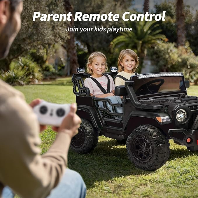 - REMOTE CONTROL: The included remote lets adults guide the two seater ride on car for kids ages 4-8, supporting safe supervision while kids enjoy independent driving. Remote control supports smooth steering and fast response.