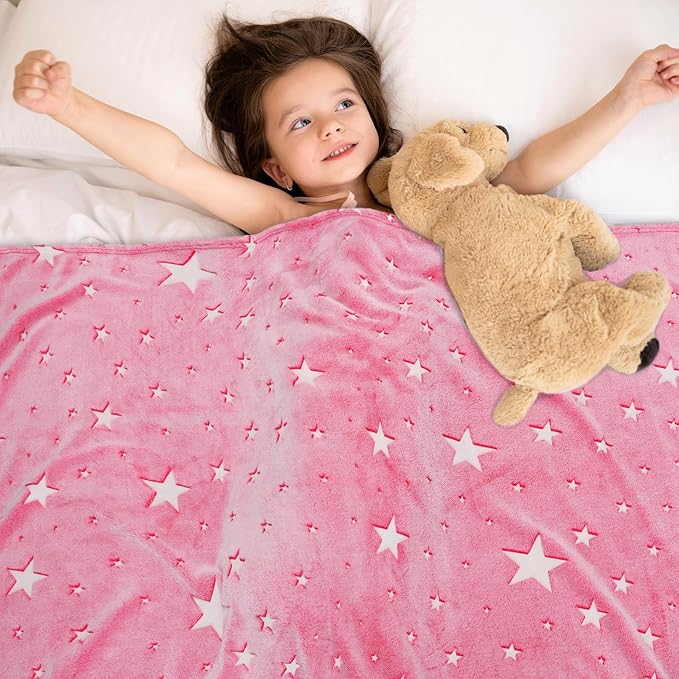 - GLOW IN THE DARK BLANKET-our glow in the dark stars blanket are glow in the dark stuff,glow in the dark blankets for boys,glow in the dark blankets for kids,glow in the dark blankets for girls.our glow blanket are luminous blanket which are kawaii blanket,cute throw blankets.our glow in the dark throw blanket not only are glow in the dark sheets,glow in the dark bedding,glow in the dark comforter,but also are little girl toys,toys for girls 2,3,4,5,6,7,8,9,10