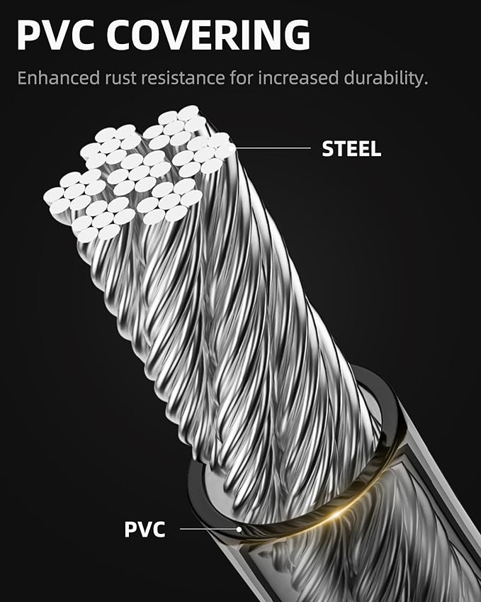 - 【Strong & Cut-Resistant】Featuring a steel wire rope that resists cutting. The durable PVC coating prevents lock from scratch and rust, ensuring long-lasting protection.