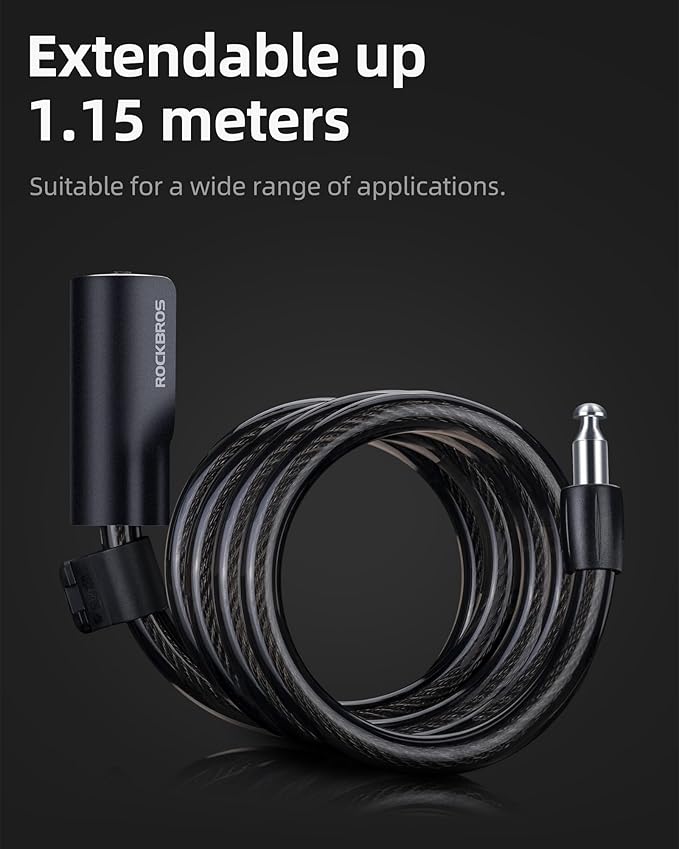 - 【ABS Lock Shell】Built with a durable ABS lock shell and a switchable cover, rockbros cable bike lock is waterproof and dustproof. Featuring a strong lock plug for easy operation, ensure a easy locking experience.