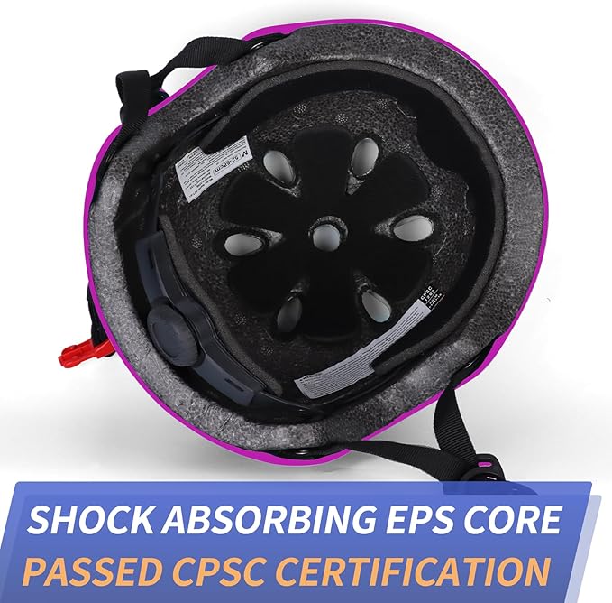 - 【High Quality Durable Material】Our kids helmet is made of ABS and shock-absorbing EPS foam, Constitute multiple protection system, specially designed for multiple-sports head protection.
