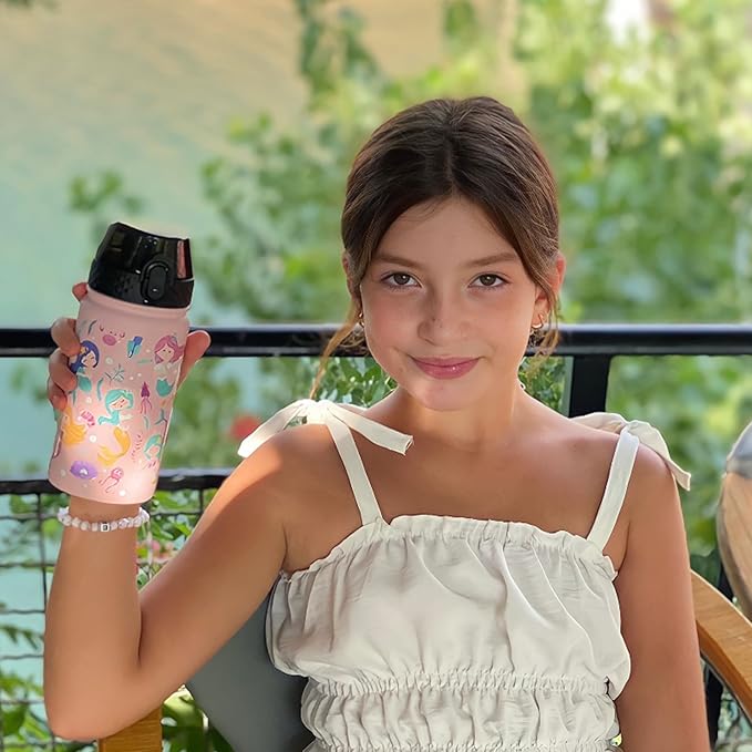 GOPPUS Kids Water Bottle (Straw Lid) - 14 Oz Stainless Steel Travel Bottle, Double Wall Vacuum Leak Proof Kids Cup for School Boys Girls,Happy Mermaids