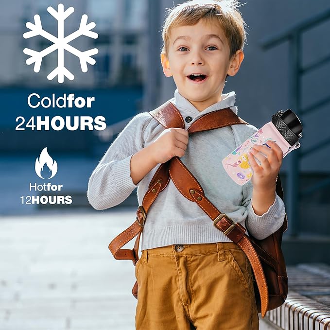 - DOUBLE-WALL VACUUM INSULATION: With double-wall vacuum insulation, these kids' cups keep drinks cold for up to 24 hours when cold and hot for up to 12 hours. Vacuum insulation technology provides superior temperature retention, keeping beverages cold for hours, ideal for school, outdoor events or travel.