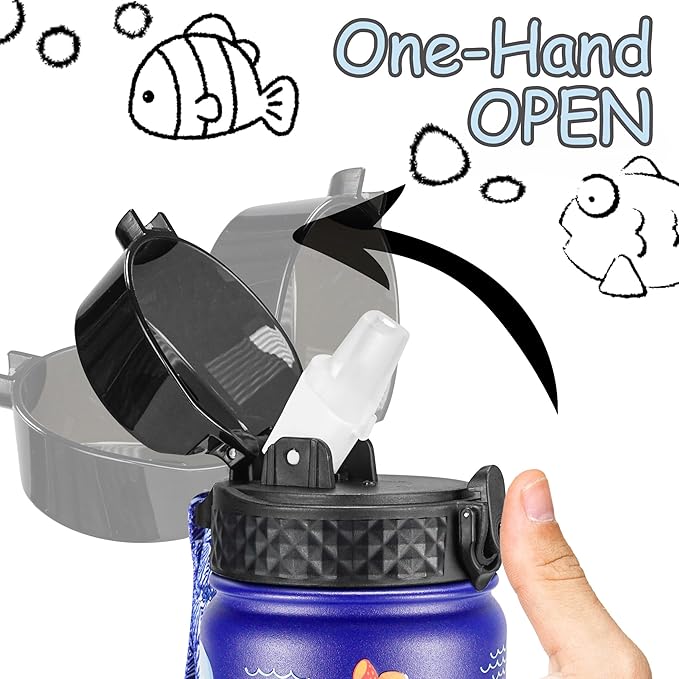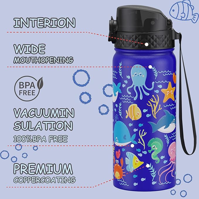 GOPPUS Kids Water Bottle (Straw Lid) - 18 Oz Stainless Steel Travel Bottle, Double Wall Vacuum Leak Proof Kids Cup for School Boys Girls,Under the Sea