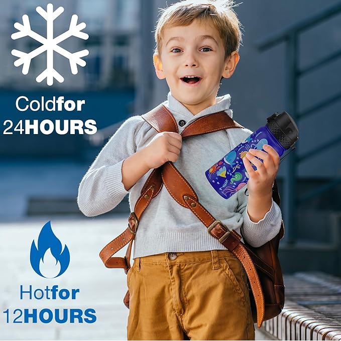 - DOUBLE-WALL VACUUM INSULATION: With double-wall vacuum insulation, these kids' cups keep drinks cold for up to 24 hours when cold and hot for up to 12 hours. Vacuum insulation technology provides superior temperature retention, keeping beverages cold for hours, ideal for school, outdoor events or travel.