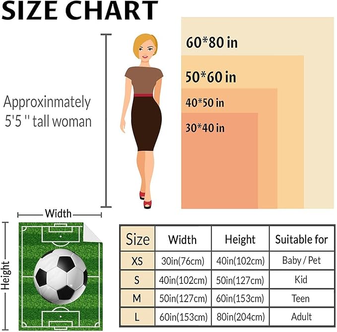 - Multifunctional Uses: This soft soccer blanket is suitable for a variety of occasions, whether it is lying in bed to enjoy a leisurely afternoon, or taking the blanket to travel, or throwing it on the sofa to watch a movie or using it in the office, you will experience extra comfortability.
