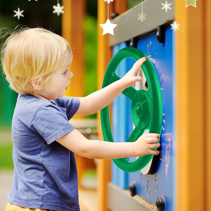 - Easy to install: the steering wheel playset is easy to install, mounting tools come with in this playset, cover cap, screw and washer, just choose the spot that you want to install, such as wooden house, swing, bookcase or table, it could be installed in a few minutes, bring more joy
