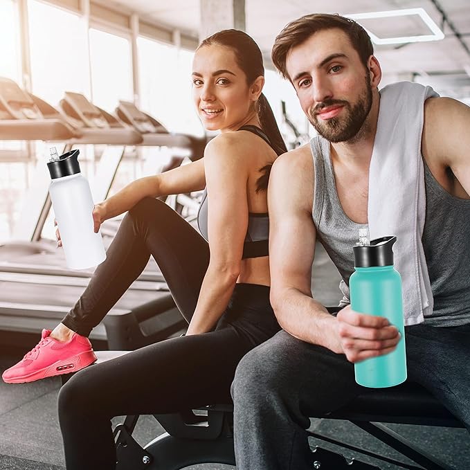 VEGOND 32 oz Insulated Water Bottle Bulk Stainless Steel Metal Water Bottles with Leak Proof Straw Lid & Spout Lid, Wide Mouth Double Walled Vacuum Travel Sports Bottle, 8 Pack