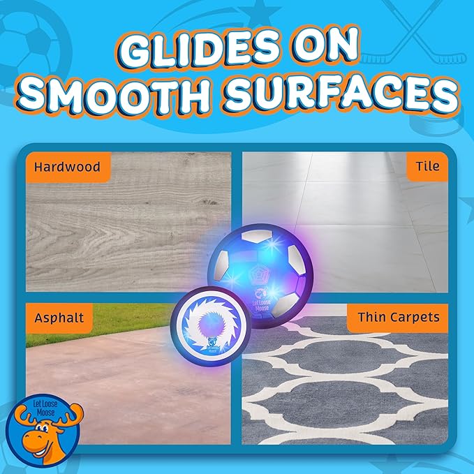 Let Loose Moose Hockey & Hover Soccer Ball Indoor 3-in-1 Set for Kids Aged 4-6, 6-8, 8-12 - Indoor Hockey and Soccer Toys Game Set for Boys and Girls