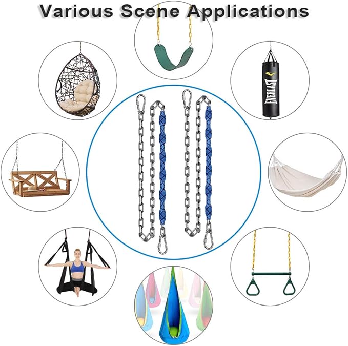 2 Stainless Steel Chains (84") Swing Chains, Heavy Duty Swing Hardware,4 Quick Connection Buckles, Indoor and Outdoor Playground Swings, hammocks, sandbags, 1000 lb Capacity Blue
