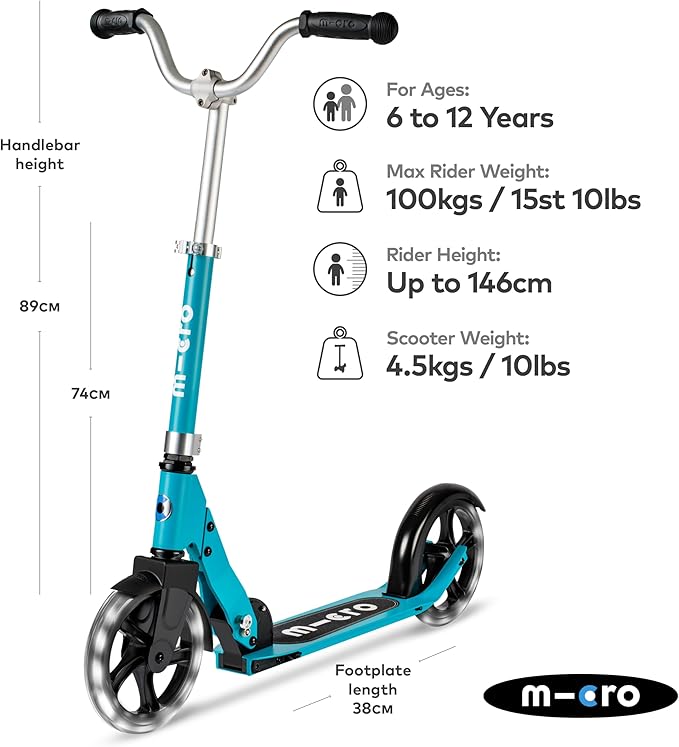 Micro Kickboard - Micro Cruiser LED - Two Wheeled, Fold-to-Carry Swiss-Designed Micro Scooter for Kids with Smooth Gliding Light-Up, Large Wheels for Ages 6+