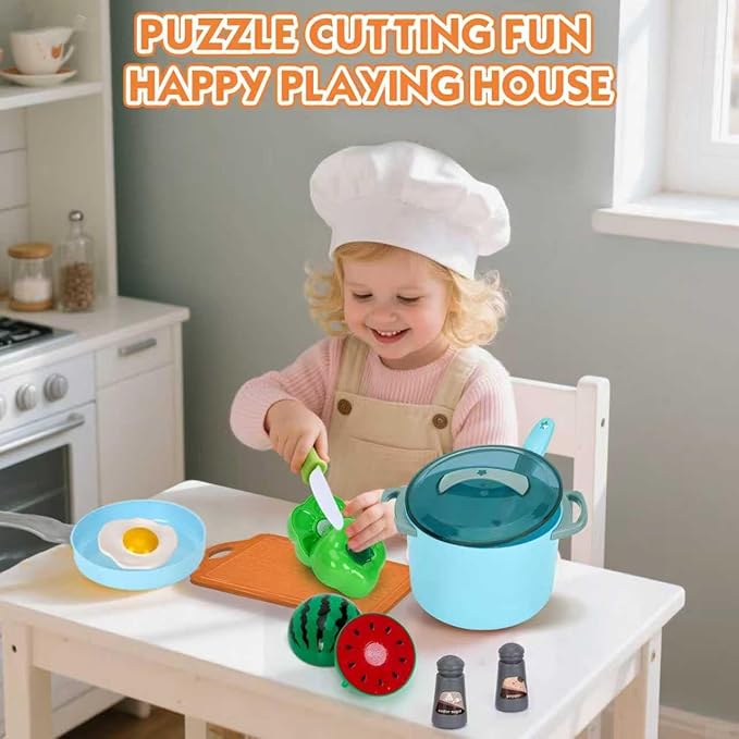 - 【Safe & Sturdy Material】Our cookware toy kitchen sets was made of ABS materials. The design can be pasted repeatedly, with strong adhesion and more durability. Without any BPA or harsh materials to ensure they are both safe and sturdy for everyday play. Our knife set is not easy to break off, both safe and made to handle daily space for kids. Plus, it’s low maintenance-just wipe down as needed. 360°fine grinding smooth without burr. Perfect size for little hands.